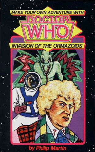 (7) You humiliatingly tell the Doctor you can't adventure with him or else you'll miss your favourite sci-fi program, which distracts him for long enough that Darval's Ormazoids manage to beam themselves to Earth and lay bloody siege to your hometown. (A strong use of the main protagonist being a stand-in for the reader.) The TARDIS spins out of control to a dusty desert planet with the Doctor knocked out. You leave to explore and accidentally activate a random switch on your way out, forced to watch the TARDIS dematerialise away. You are enslaved by a giant rock-eating spider until the day you die.